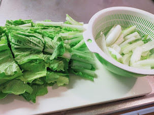 - しろなはきれいに洗って(根に近いところは土が付いているのでザルで何度か洗ってね)