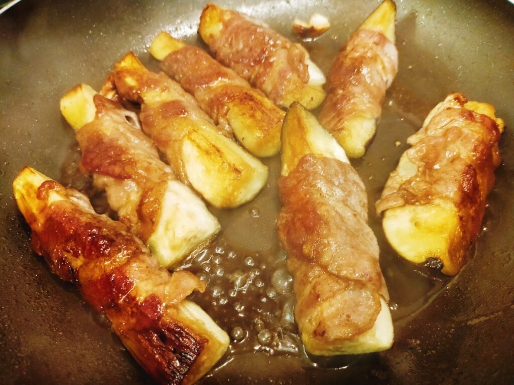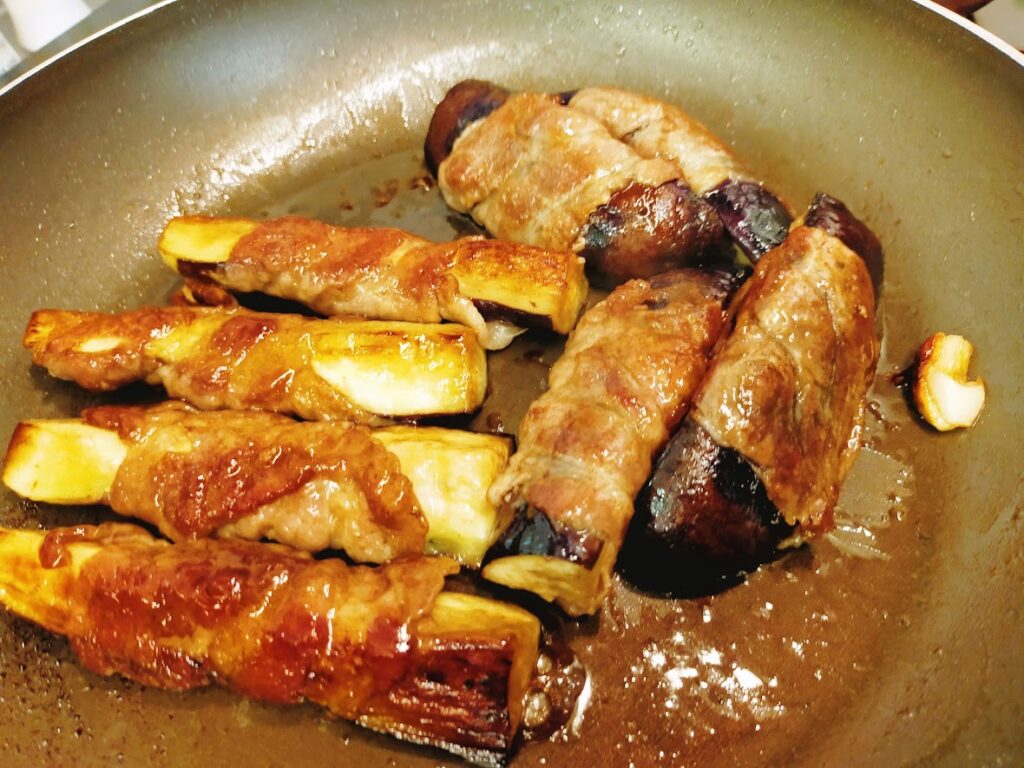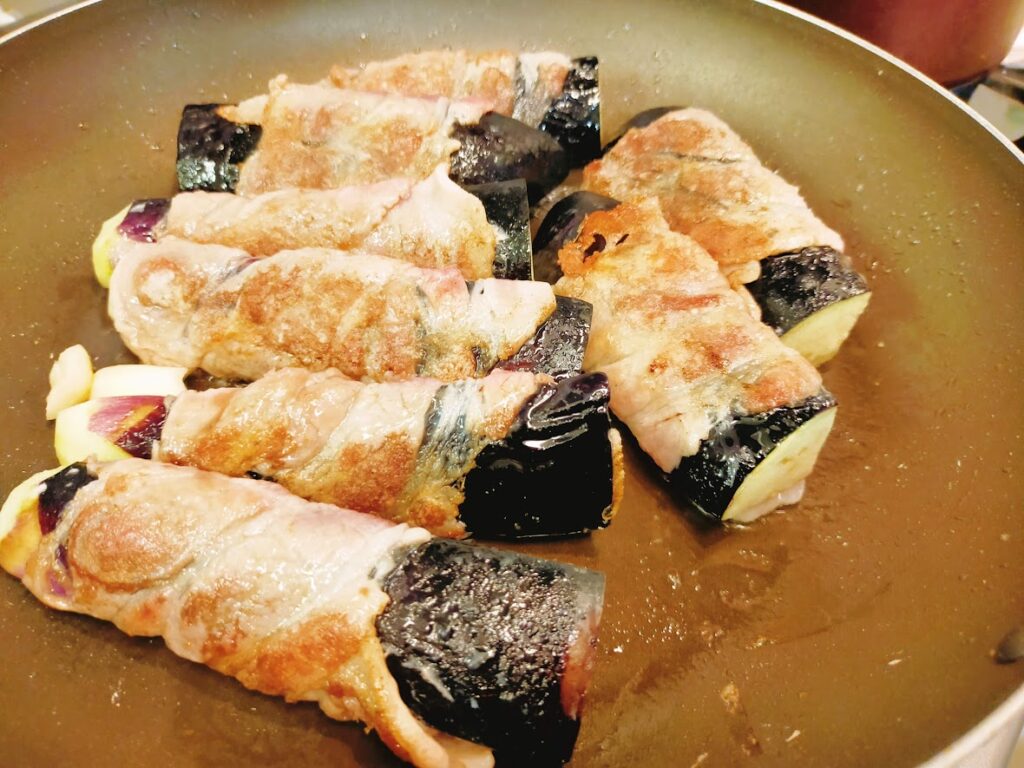なすに豚肉を巻いて、すっぱいのが苦手な人にも食べやすいさっぱり味に