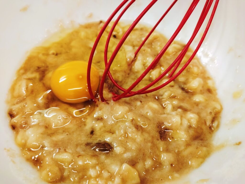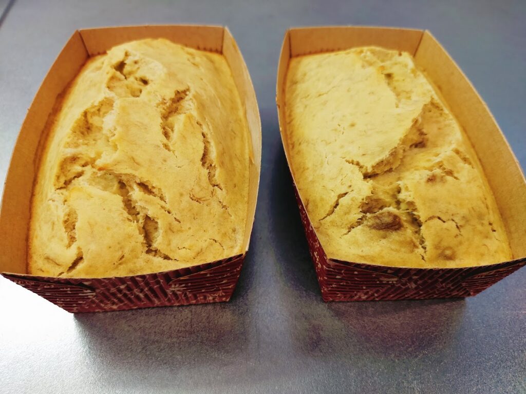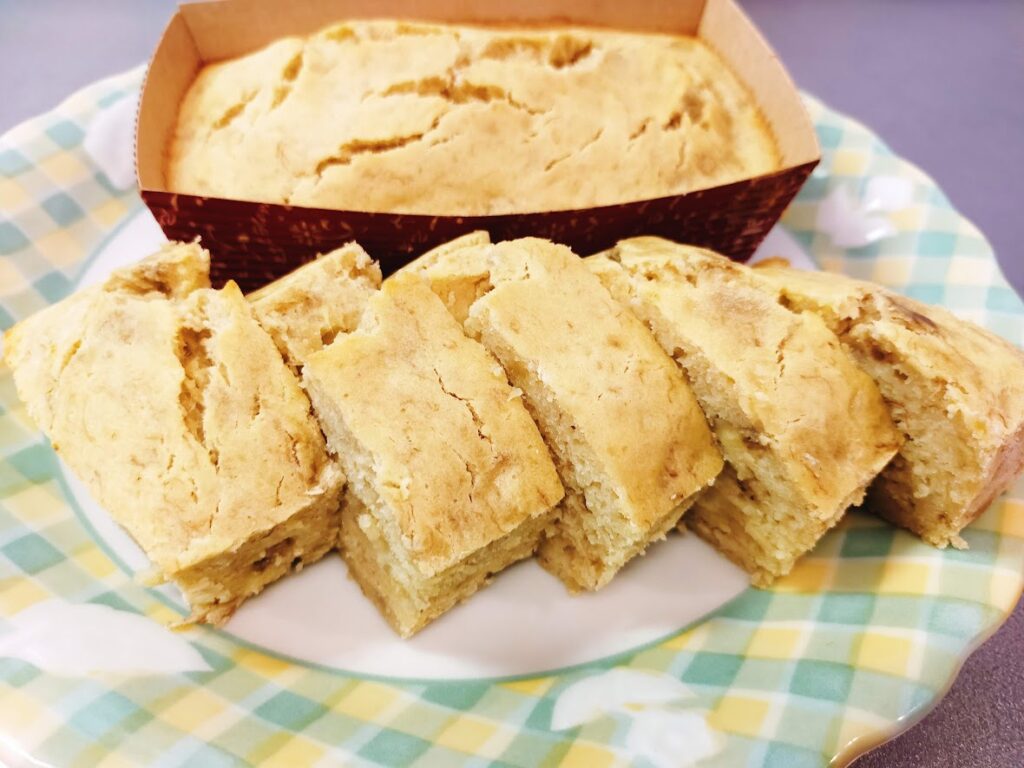 - 米粉で、もっちり食感のバナナケーキに仕上がります。
