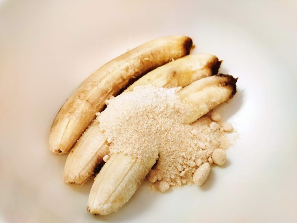 - 熟していないバナナだと甘さとうま味がでないので、黒い斑点がある(シュガースポット)を使って下さいね。