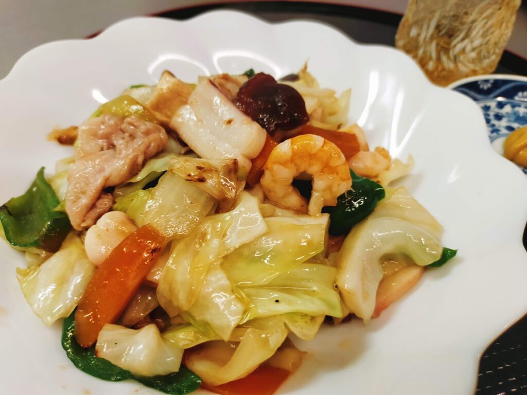 冷蔵庫の中の少しずつ残った野菜で、八宝菜。