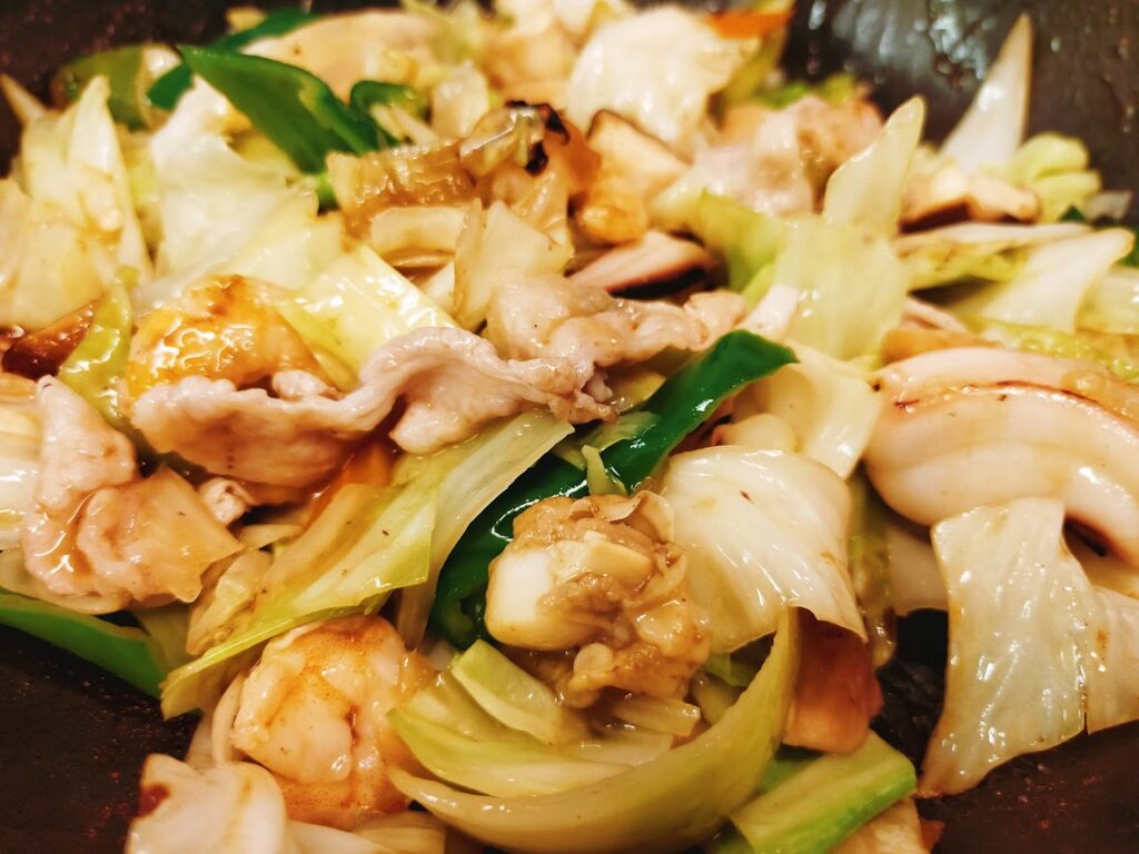 - 豚肉の代わりにハムや、シーフードの代わりにかまぼこ等を使っても美味しいです。