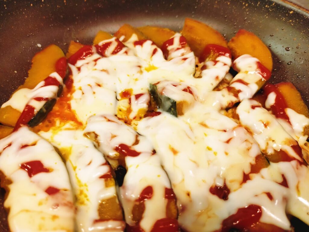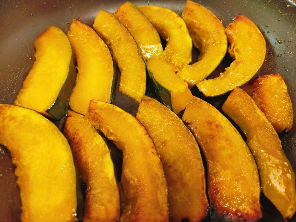 かぼちゃとチーズの相性はとても良いので、フライパンで一緒に焼きましょう。