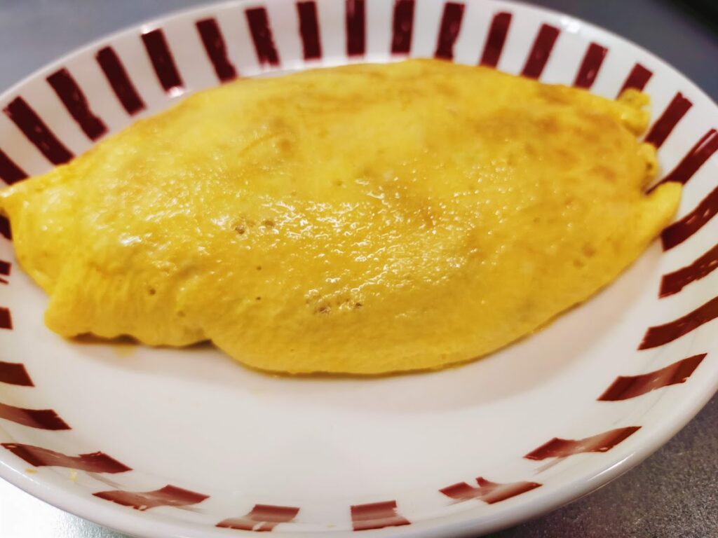 我が家の定番オムライスは、ケチャップライスではなく、コンソメ味のライスです。