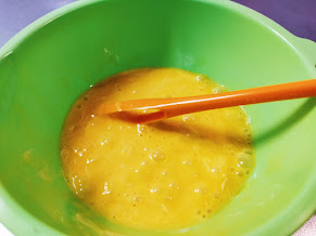- 卵2個に、マヨネーズを小さじ2を入れて、40~50回混ぜます。