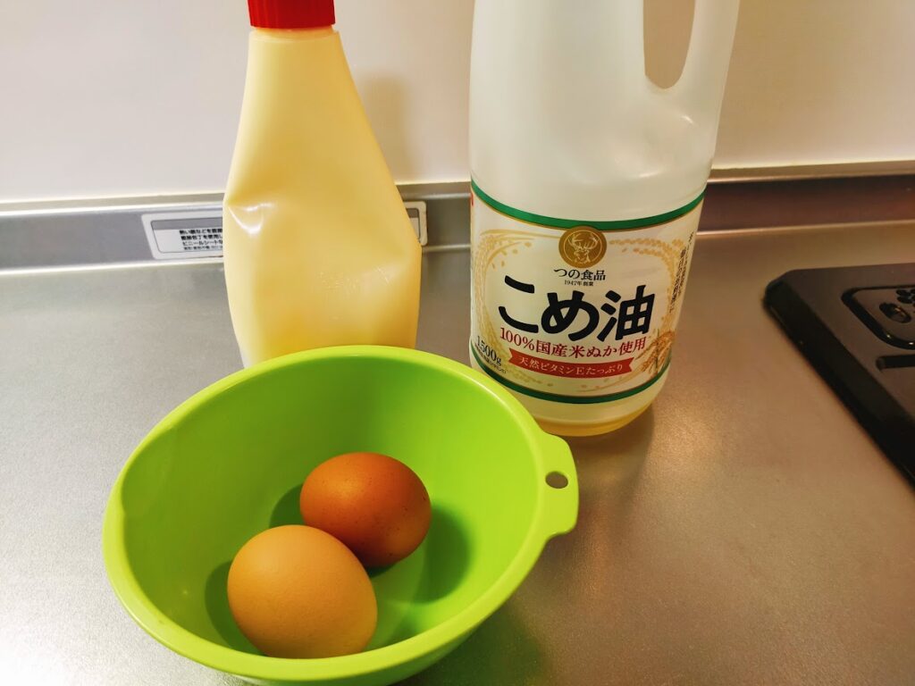 - 卵1個にマヨネーズを小さじ1の割合で加えて混ぜると、乳化されてふんわり焼きあがります。
