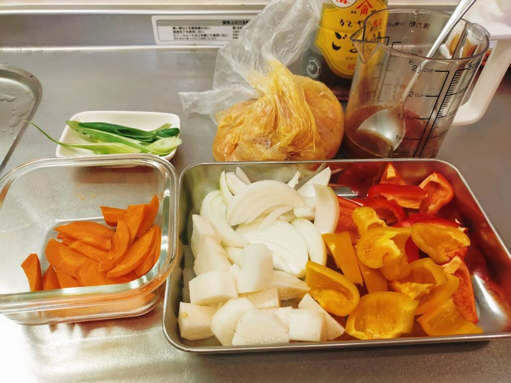 - ほかの野菜は、一口大の大きさにそろえて切ります。
