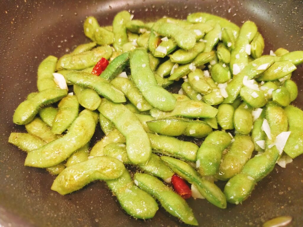 枝豆を湯がかずに炒めて、うま味をぎゅっと閉じ込めました