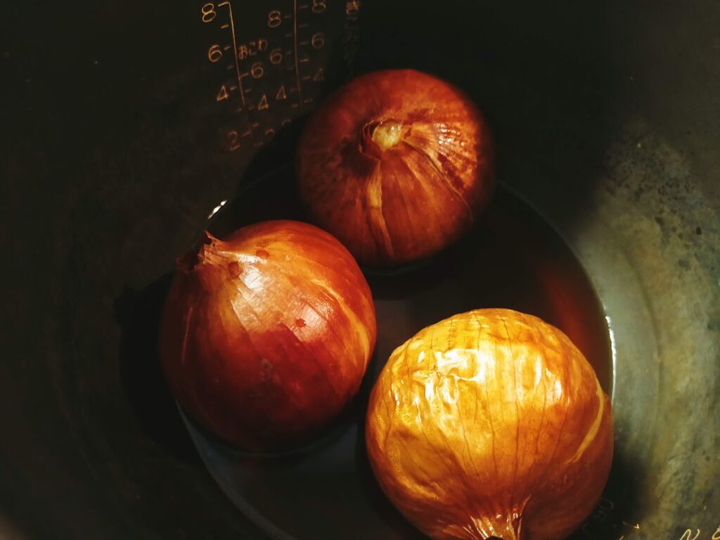 玉ねぎを炊飯器に入れて、スイッチオン!