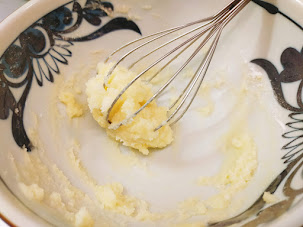 - バターと米粉を耐熱皿に入れて、レンジ(600w)で30秒チンします。
