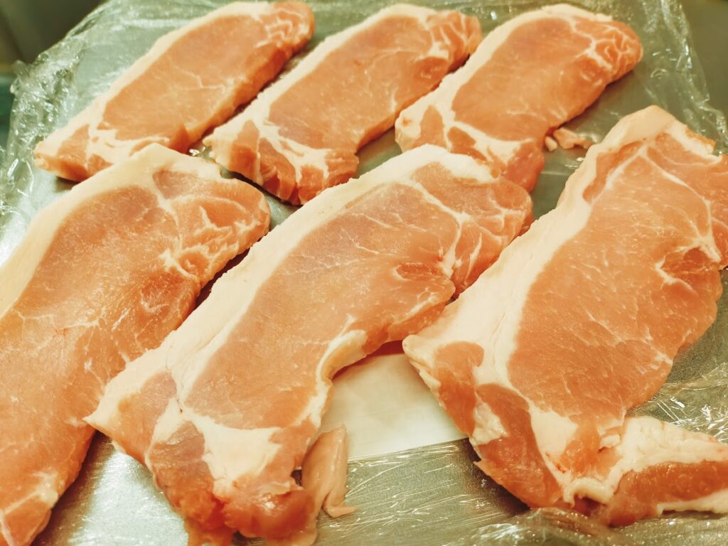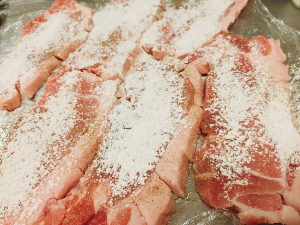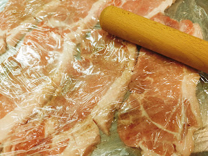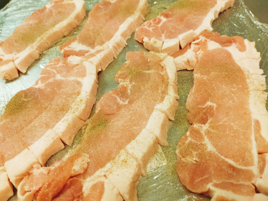 - 豚肉に軽く塩コショウします。(片面だけで良いです)