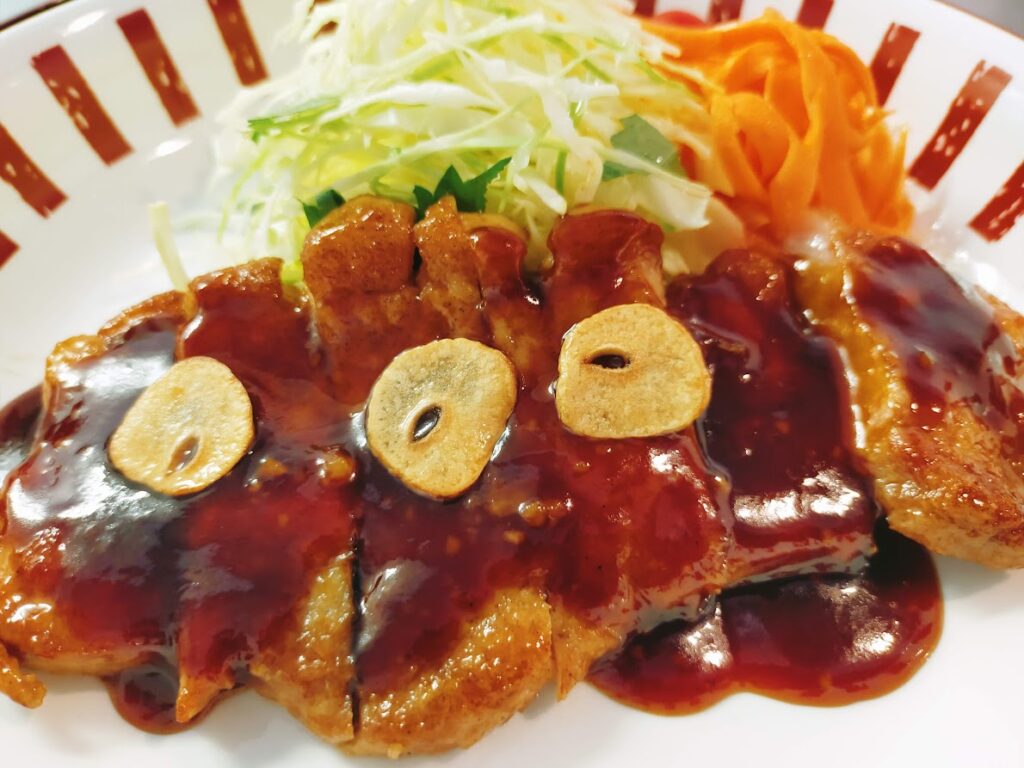 甘辛味の絶品タレで、キャベツもりもり、ご飯もりもり